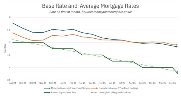 “Mortgage borrowers may see more tangible savings, but expectations should remain measured. Over the past few years, average mortgage rates have typically sat around 0.8 percentage points above the Base Rate. On that basis, a 3-3.5% Base Rate suggests average mortgage rates settling between 4% and 4.5%, lower than today, but still substantially higher than the ultra-cheap borrowing many households became accustomed to in the 2010s.